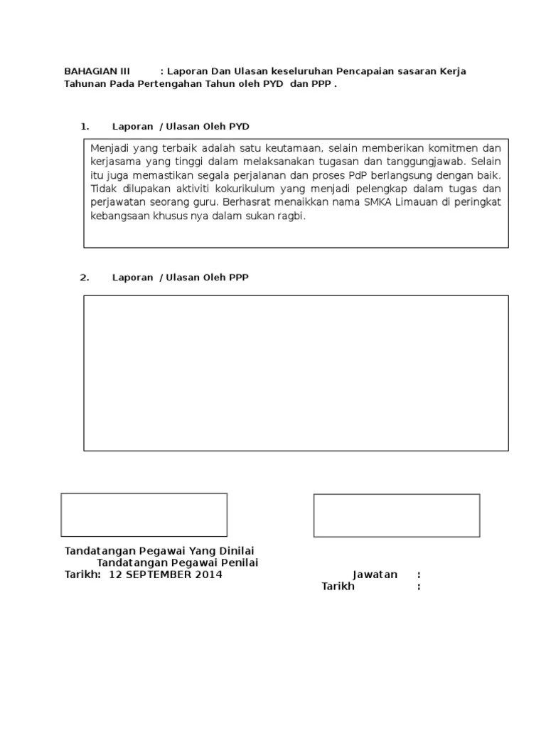 Contoh borang sasaran kerja tahunan skt yang lengkap tahun 2014 blog cik. Skt contoh ayat ulasan penilaian prestasi kerja cute766. Skt contoh ulasan pyd yang terbaik.